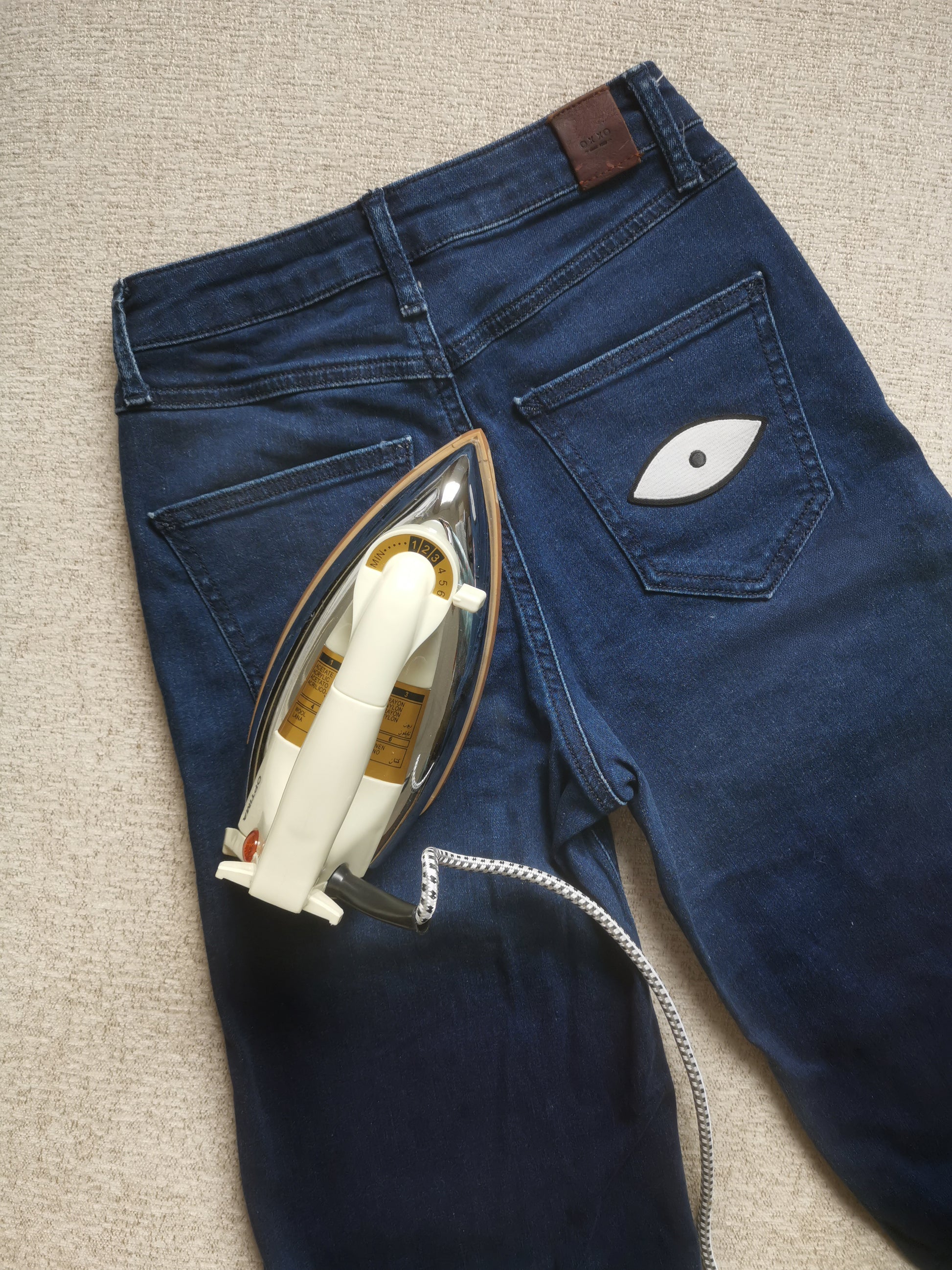 - Flip the garment inside-out, apply direct heat (or place a thin cloth over it to avoid a burnt effect on your garment before applying heat) with the iron onto the areas until adhered. Once again, allow the patch to cool.