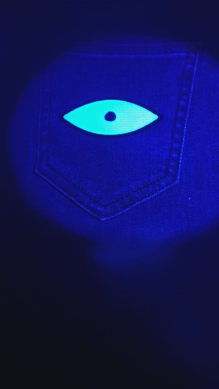 Glow-in-the-dark Embroidered Iron-on eye patch.